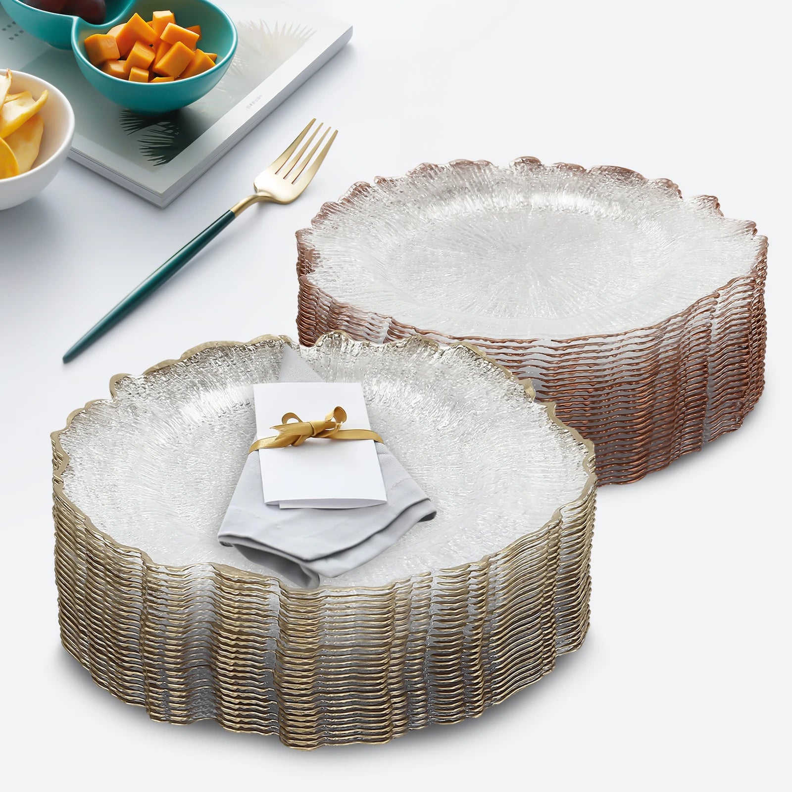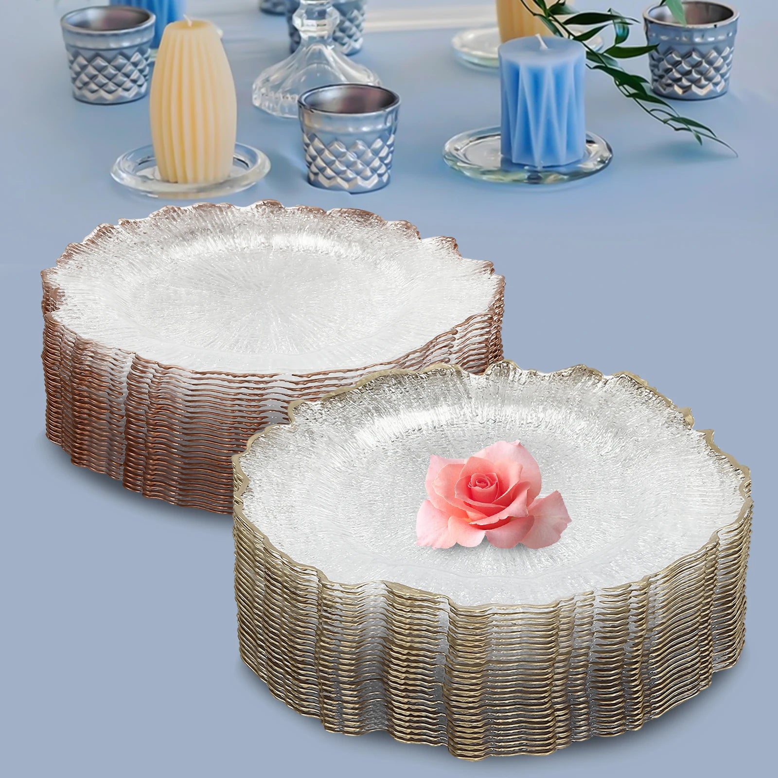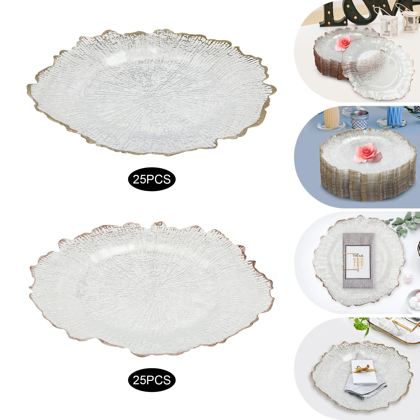25Pcs Gold/Rose Gold Charger Plates Clear Charger Plates 32