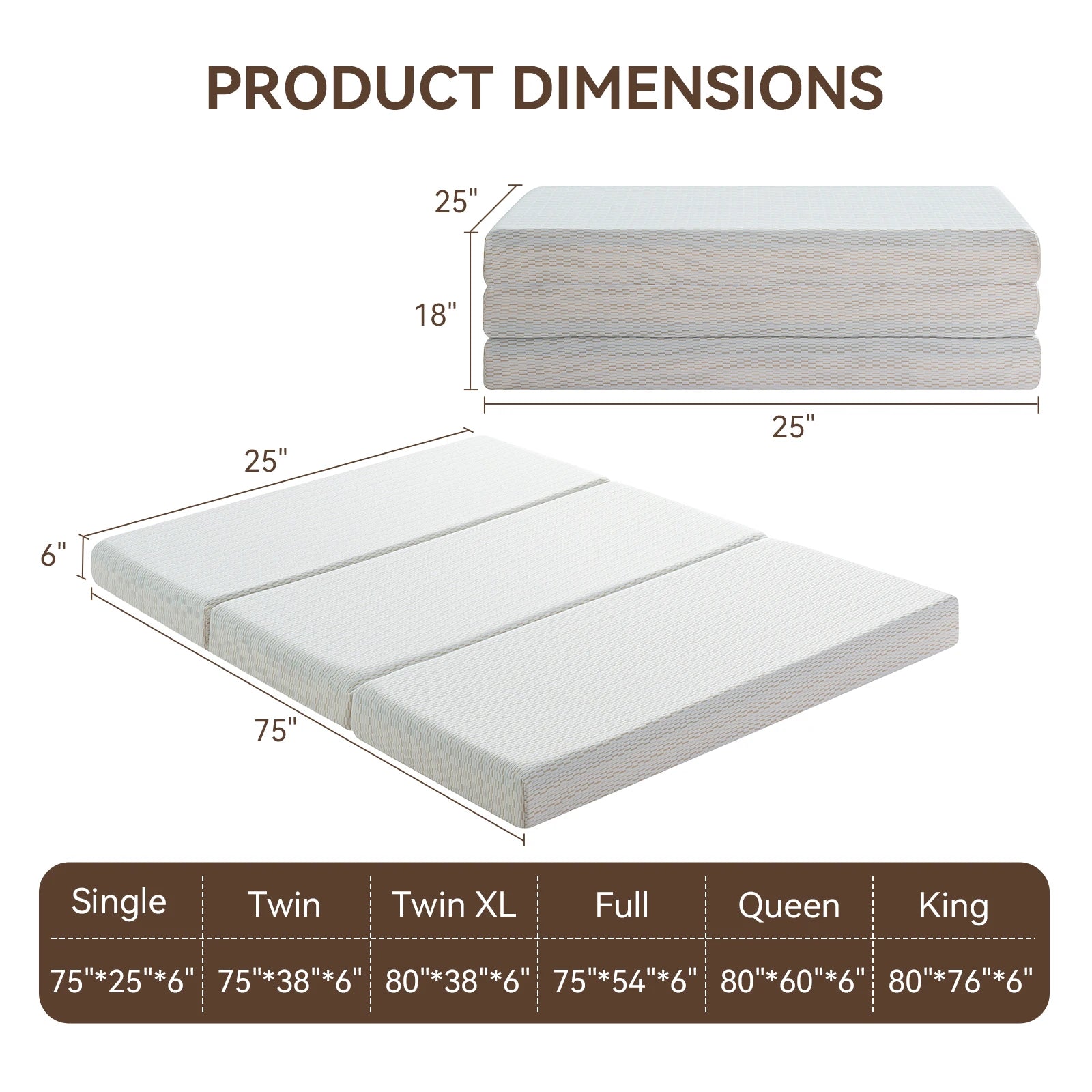 Hcore 1 PC Tri fold Memory Foam Mattress, 6 Inch Fold Up Mattress with Storage Bag, Full Folding Mattress for Floor, Guest Beds