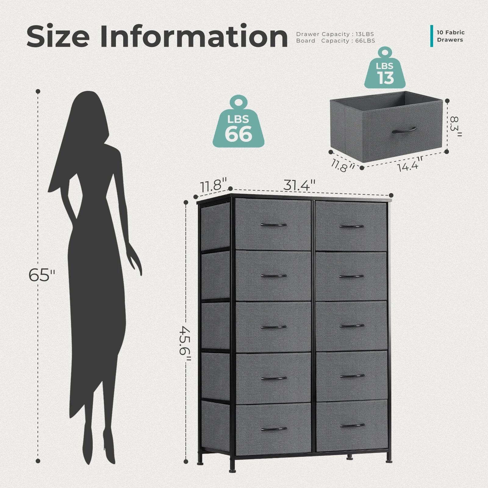 JHK Bedside Table For Bedroom With 10 Fabric Drawers